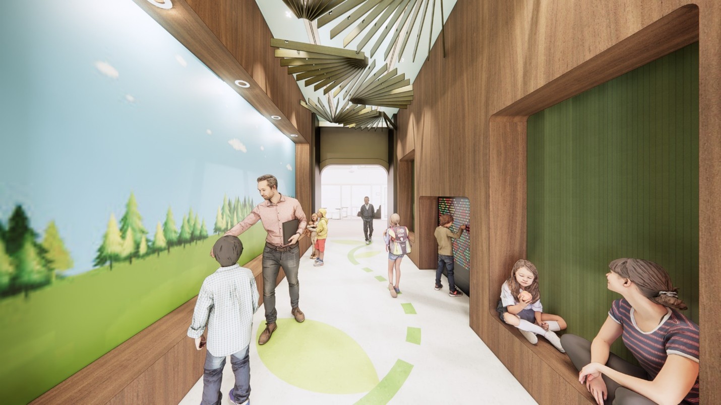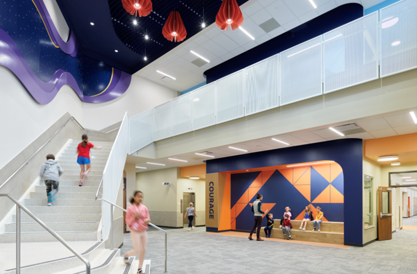 Minerva France Elementary School was designed to ignite curiosity and celebrate the joy of learning. From its earliest concept, the school’s design team worked hand-in-hand with the community to create an environment that reflects the site’s playful history while meeting the needs of today’s learners. Corridors inspired by rollercoasters and golf course paths create movement and discovery, while flexible classrooms and breakout spaces support collaboration and individualized learning. Bright colors, natural light, and varied materials energize each space and nurture a sense of belonging. Custom graphics, intuitive wayfinding, and furniture selected for comfort and adaptability make the school a place where students feel at home, inspired to explore, and proud to be part of their community.