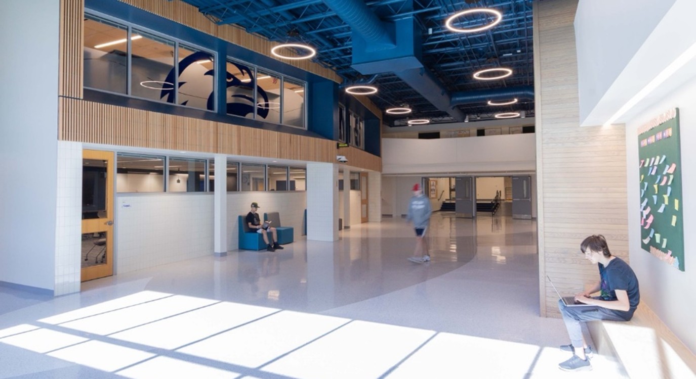 Grandview Heights Schools’ renovated high school and newly constructed middle school form a unified 4–12 campus that supports collaboration and connection among all students. Shared dining and athletic spaces link the two schools and enable resource sharing across grade levels. Classroom clusters surround open collaboration commons, with glass walls and garage-style doors encouraging interaction between students and instructors. Visitors will experience a cohesive design language of transparency, natural light, and flexible, open spaces, where exposed structure and natural materials create an adaptable, collaborative learning environment.